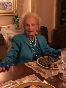 This year I brought mother home after mid-August. She was exhausted. She was one of those people who could rise to the occasion, especially if it included a party and dressing up. Friends and music and perhaps dancing brought a big smile to her face. But she did not know people whom she was with any longer. Her friends were nearly all dead. So her guests were often children or grandchildren of her generation. She could fool them, though. She was so gracious and so good at pretending to know people; she knew every trick to make a guest feel as if she did know them. I watched her do it countless times. She batted those blue eyes and said something like, “Oh Good! It is so nice that YOU have come. That makes the party special!” or one time when a guest thanked her for asking him, she answered, “Oh! I would never have NOT invited YOU!” (As if that particular guest was the star of the party)