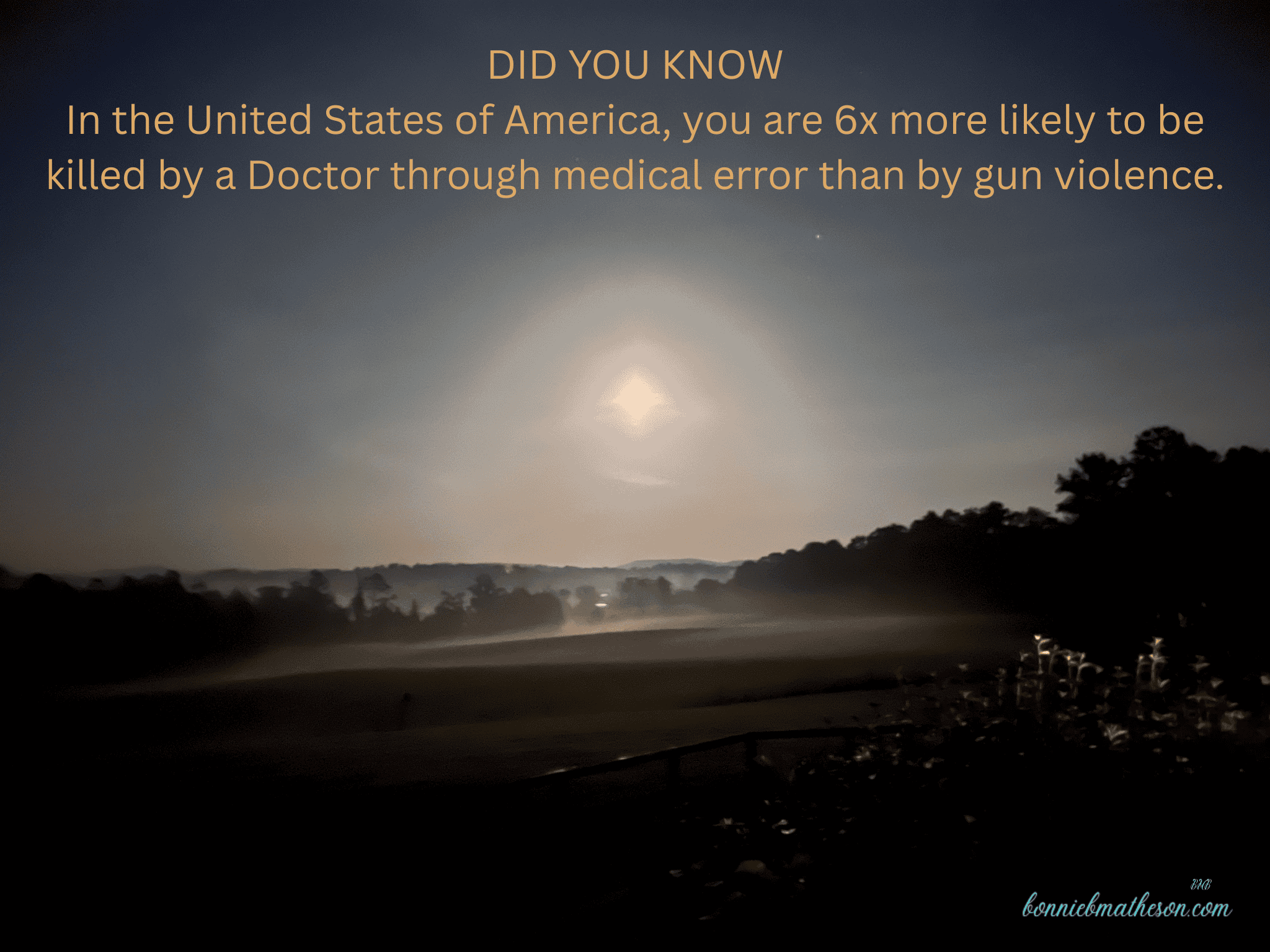 DID YOU KNOW In the United States of America, you are 6x more likely to be killed by a Doctor through medical error than by gun violence. Published July 8, 2025 at 2048 × 1536 in DID YOU KNOW In the United States of America, you are 6x more likely to be killed by a Doctor through medical error than by gun violence. ← Previous / Next →