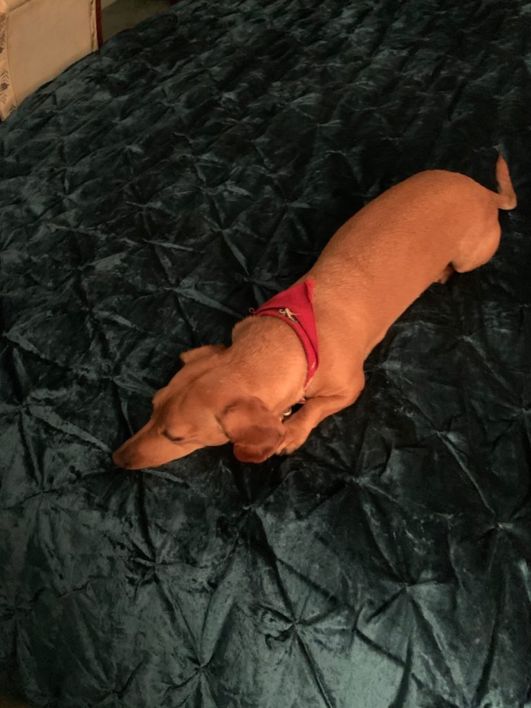 When the alarm went off this morning, my body jerked awake, startled. My dreaming had been so deep and thrilling. Populated with so many characters, places, colors, and a babble of language and unfinished thoughts, and then?consciousness and reality arrived. Ouch. My warm little smooth haired miniature dachshund Sisi nestled in the curve of my bent knees warm as toast under the covers.