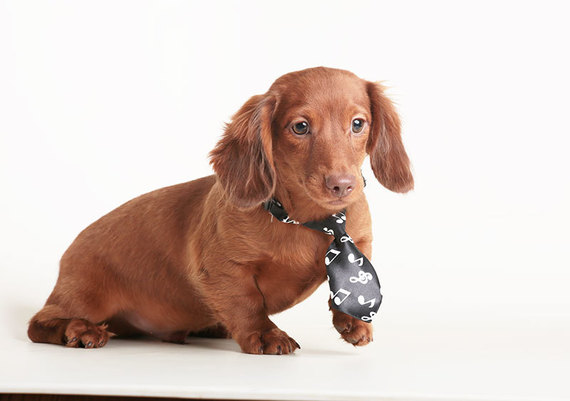 Haha!!! Those photos were so cute. The puppy was wearing a tie, like a man?s tie but just his size. He had an expression on his face best described as a smirk. He was so adorable I could not stop looking at the photo. That dog looked like he had the personality of an angel. So sweet and cuddly and small and supple.